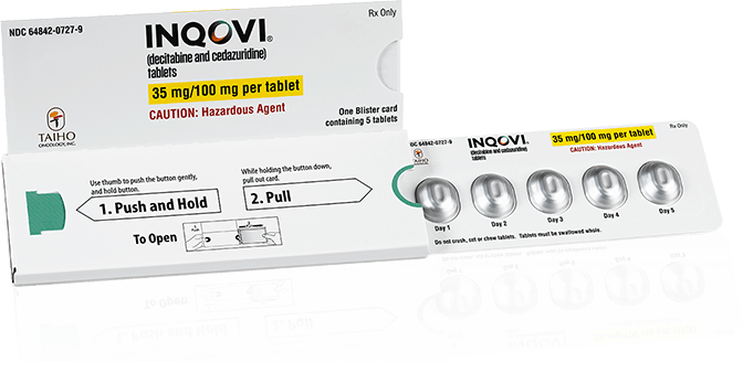 Tabletas orales que combinan decitabine y cedazuridine para tratar MDS y CMML, mejoran la respuesta hematológica, reducen dependencia de transfusiones, con monitoreo por mielosupresión.