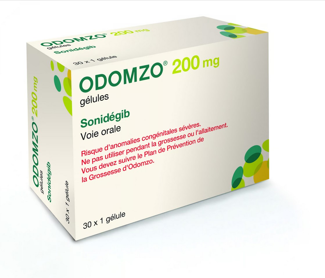 Odomzo es un inhibidor de la vía de señalización Hedgehog, que bloquea la proteína SMO para suprimir el crecimiento de tumores de carcinoma basocelular.