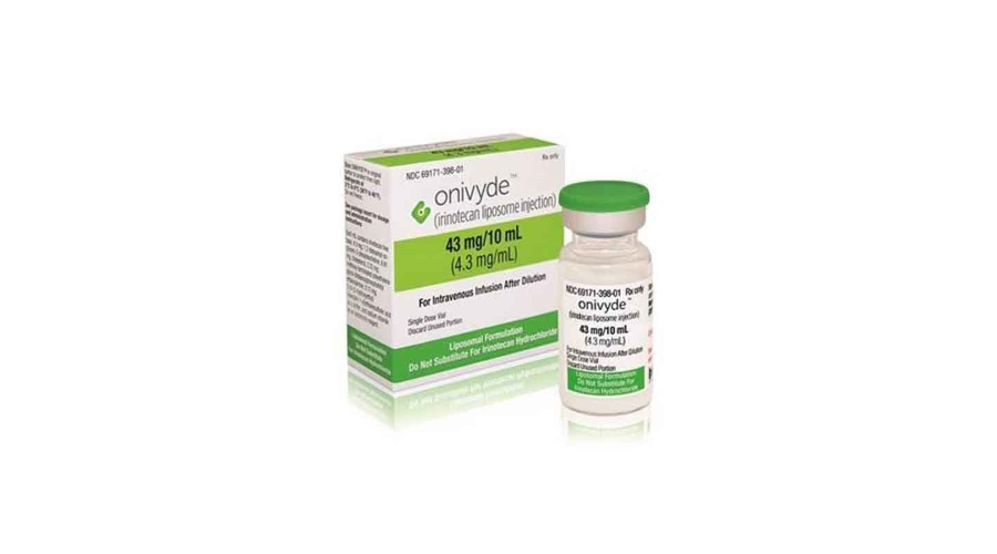 ONIVYDE contiene irinotecán encapsulado en liposomas, lo que modifica su distribución. Inhibe la topoisomerasa I, impidiendo la replicación del ADN celular. Se usa en cáncer de páncreas metastásico tras fallo a gemcitabina o como primera línea en combinación (régimen NALIRIFOX).