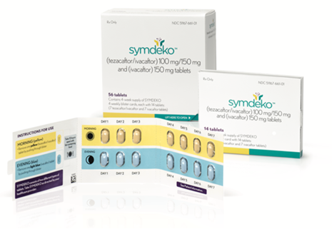 SYMKEVI/SYMDEKO es un tratamiento de dos tabletas diarias que combina tezacaftor e ivacaftor para potenciar la proteína CFTR defectuosa, mejorando la función pulmonar y reduciendo exacerbaciones en niños ≥6 años y adultos con fibrosis quística específica.