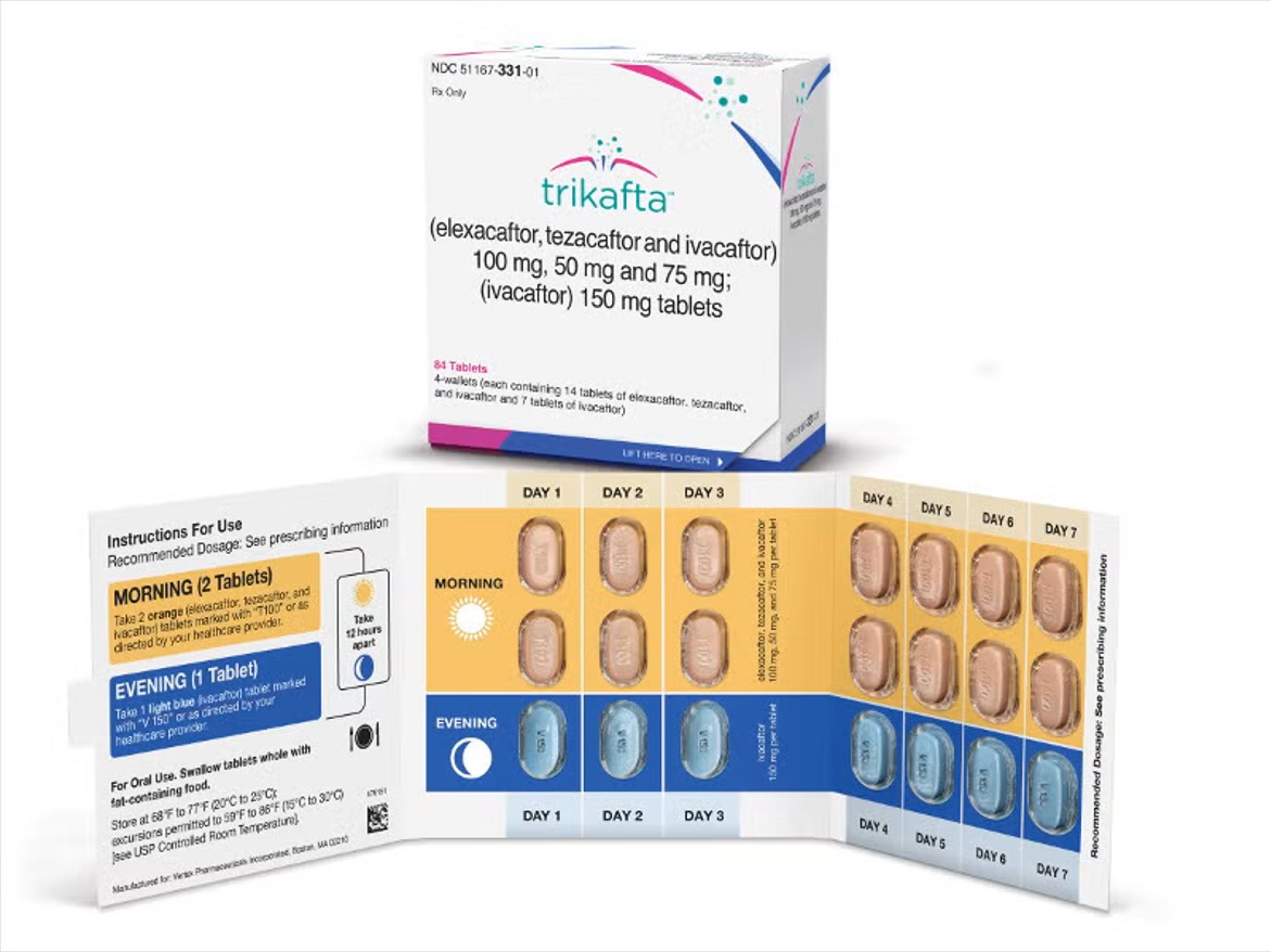 Trikafta combina elexacaftor, tezacaftor e ivacaftor para corregir y potenciar la proteína CFTR defectuosa, reduciendo síntomas de fibrosis quística como infecciones pulmonares y malnutrición en pacientes con al menos una mutación F508del.