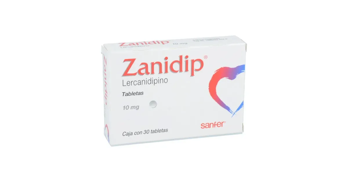 Zanidip, con lercanidipino, relaja vasos sanguíneos reduciendo presión arterial, efectivo en hipertensión esencial, con dosis inicial de 10 mg diaria, aumentable a 20 mg según respuesta.